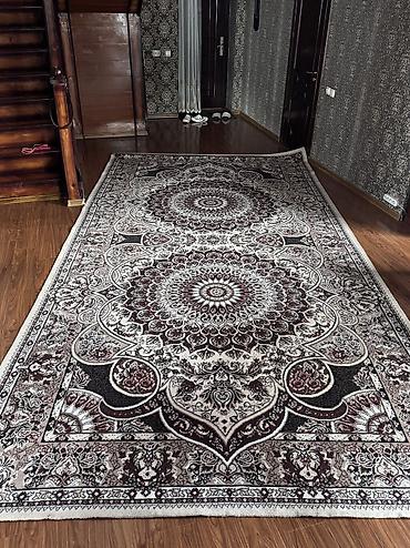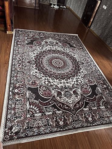 Ковер. размер 2х3. цена 2500 сом - Материал: плотный ворс (средней высоты), мягкий на ощупь, легко пылесосится. - Цвета: серый фон с бежевыми и коричнево‑шоколадными узорами; контрастная кайма по...