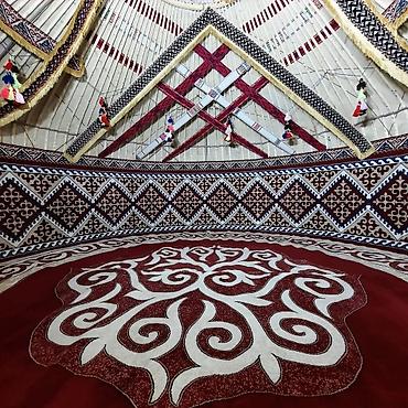 Традиционный круглый ковёр для бозүй/юрты с национальным орнаментом. - Назначение: настил в юрту (бозүй), этно-интерьеры, зональное оформление зала, фотозоны и т.п. - Форма: круг. - Диаметр: 6×6 м...