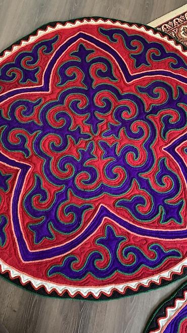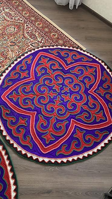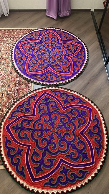 Эффектный акцентный ковер, который добавит интерьеру яркости и колорита. Диаметр визуально сопоставим со стандартным прикроватным/центральным ковриком среднего размера. Все из натурального войлока