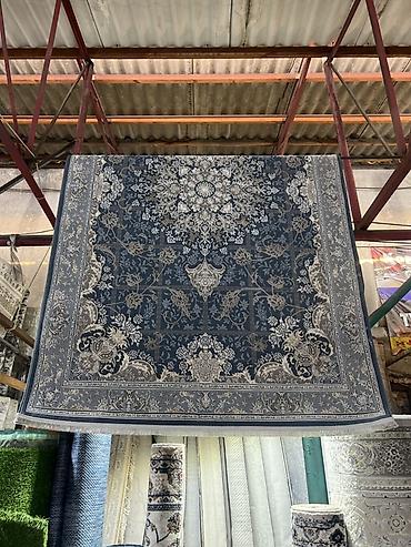 Продаётся ковёр классического восточного дизайна. Характеристики: - Цветовая гамма: насыщенный сине-голубой фон с бежево-коричневыми и белыми орнаментами. - Узор: центральная медальонная розетка, ...
