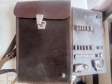 Кожаная пололевая сумка с плечевым ремнём + армейский котелок.