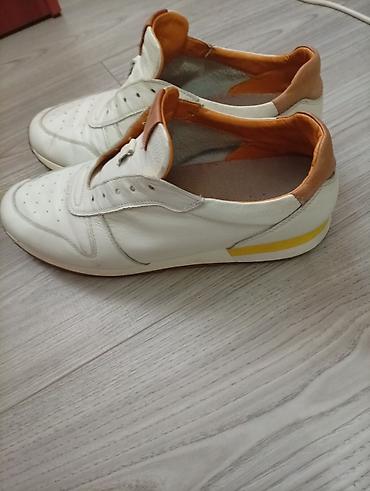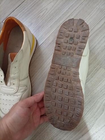 - Цвет: белый с светло‑коричневыми вставками, желтая декоративная полоса на пятке.