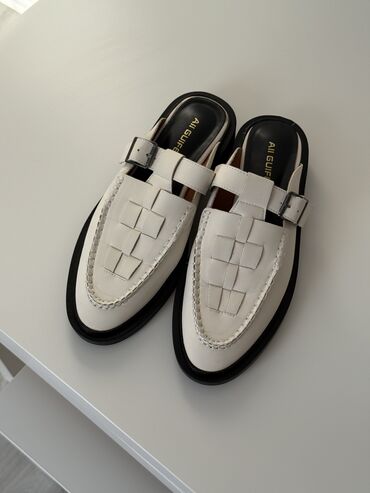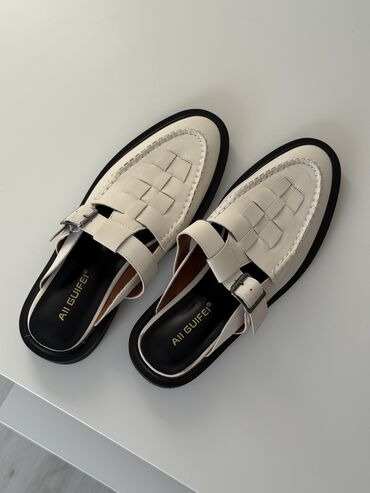 1. Черно-белые маломерят подойдут на 38-39. Состояние отличное. 500 сом 2. Белые мокасины с сердечками 100 сом размер 37. 3. Белые мокасины гуччи. размер 36-37. 200 сом