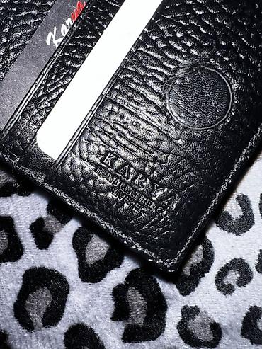 - Компактный вертикальный кардхолдер из фактурной черной кожи.
