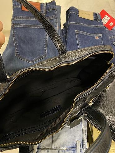 Коричневый портфель из натуральной кожи с двумя ручками. Оснащен