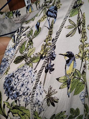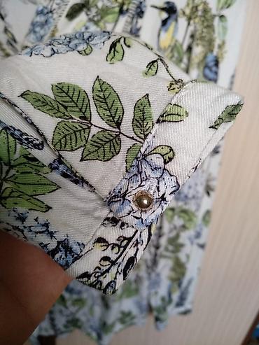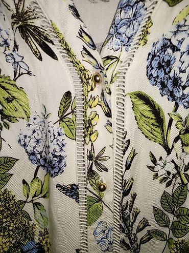 Красивая, очень женственная блузка / рубашка (с цветами, птицами) и золотыми пуговками, размер 42/ s, m. Отлично смотрится, украсит и освежит любой образ