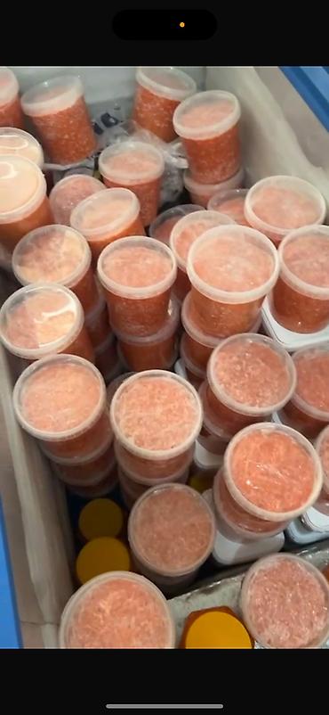 Икра красная зернистая в пластиковых ведёрках. Икра форели