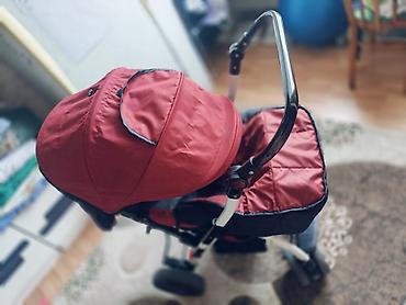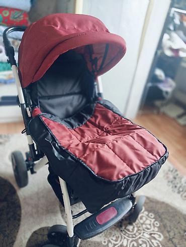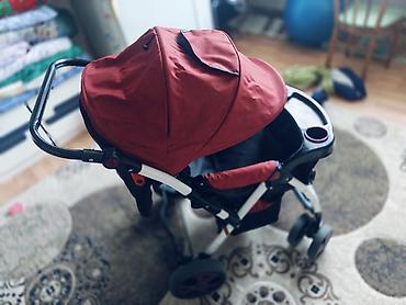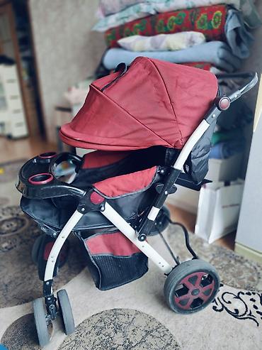 Прогулочная коляска красно‑черного цвета.