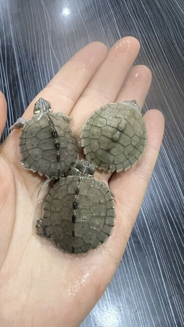 Маленькие водные черепашки (примерно с монету по размеру). Зеленоватый панцирь с выраженным рисунком сегментов, короткие перепончатые лапки, активные в воде. Подходят для содержания в акватеррариум...