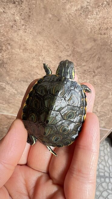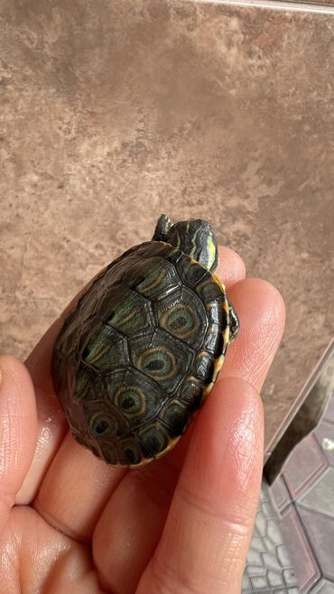 Красноухие водные черепашки-малыши 500 сом за петерых а один 200сом - Вид: красноухая черепаха (Trachemys scripta elegans), домашний водный питомец - Размер сейчас: примерно с монету/спичечный коро...