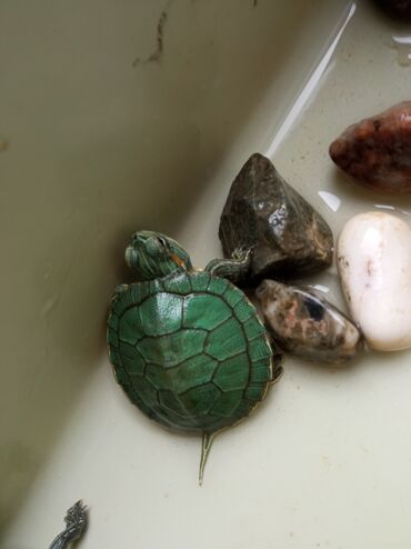 - Небольшие активные водные черепахи с характерными красными “ушками” у головы и ярко‑зелёным рисунком панциря.