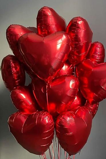 Фольгированные шары-сердца, красные, наполненные гелием. - Форма