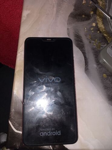 - Экран: полноразмерный дисплей с вырезом (notch) под фронтальную камеру и разговорный динамик. При включении отображается логотип «vivo – Camera & Music» и «Powered by Android».