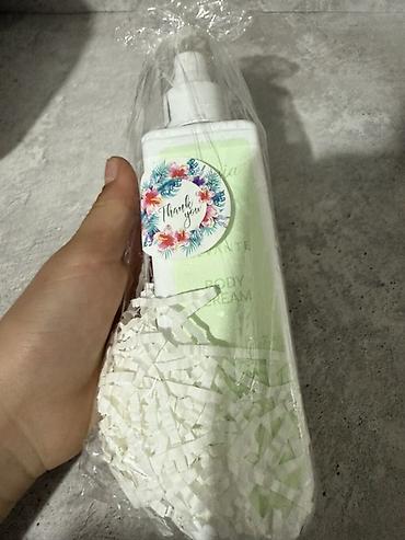 - Формат: бутылочка с помпой-дозатором, запаянная в прозрачную плёнку, на ленте-стикере “Thank you”.