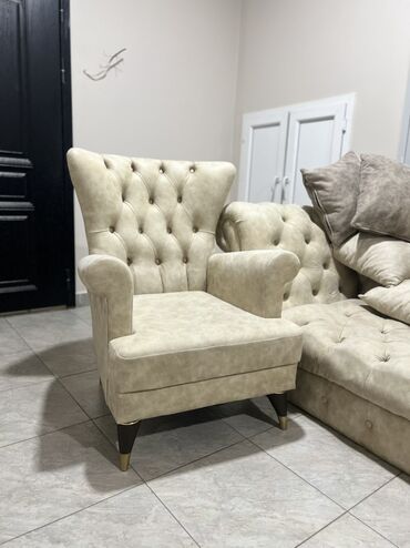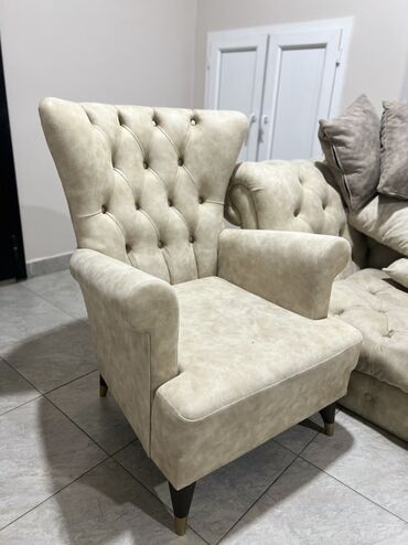 - Обивка: мягкая велюровая/замшевая фактура с каретной стяжкой и декоративными пуговицами на спинке