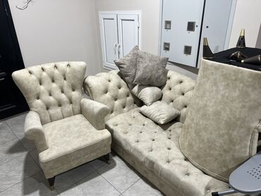 Дополнительно: в наличии на фото — диван и подушки в той же ткани и стиле (единый комплект по дизайну).