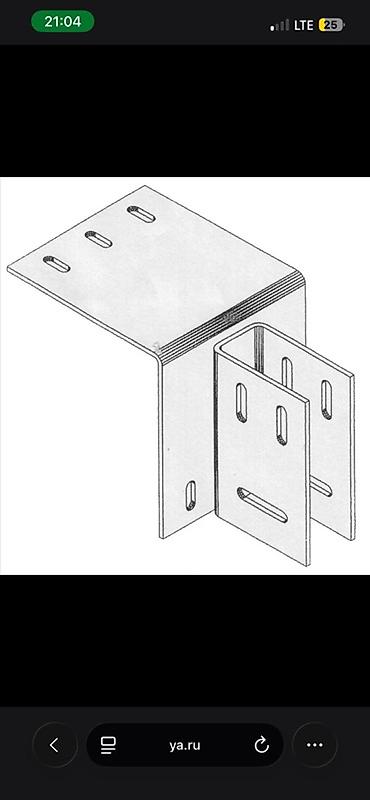 - Конструкция: П-образная часть для охвата профиля + отгиб под 90° с монтажной площадкой. Несколько продолговатых и круглых отверстий под болтовые соединения обеспечивают точную подстройку и фиксацию.