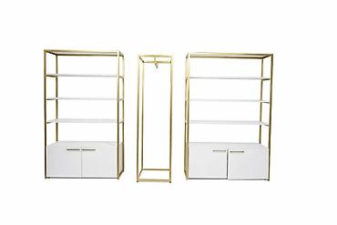 - Цвет: золото (каркас), белые полки/вставки