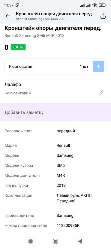 - Совместимость: Renault Samsung SM6 с двигателем M4R