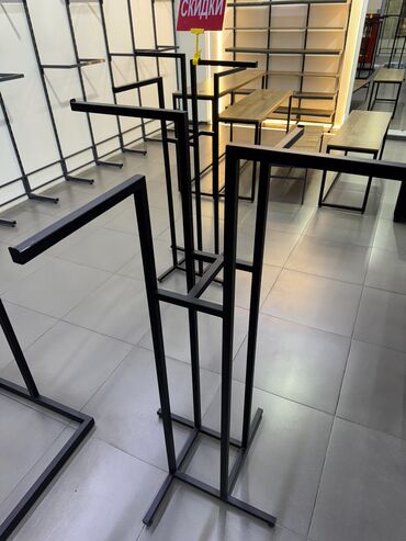 Металлические торговые стойки и стеллажи для одежды - Материал: прочный металлокаркас, сварная конструкция, порошковая окраска в матовый черный. - Комплектация: - Настенные модули с верхними пол...