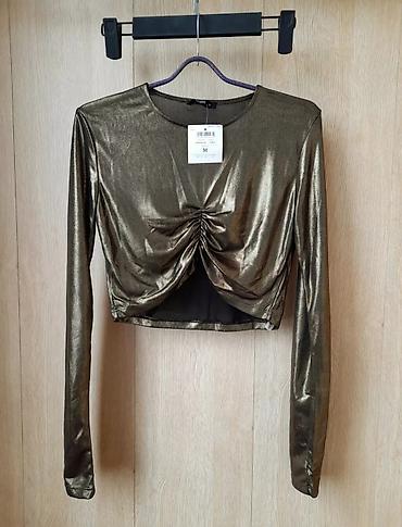 Кроп топ с длинным рукавом и драпировкой от фирмы Calliope (размер M, 42-44) цвет блестящий металлический женская одежда вечерняя одежда кофта блузка водолазка