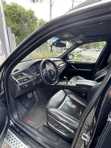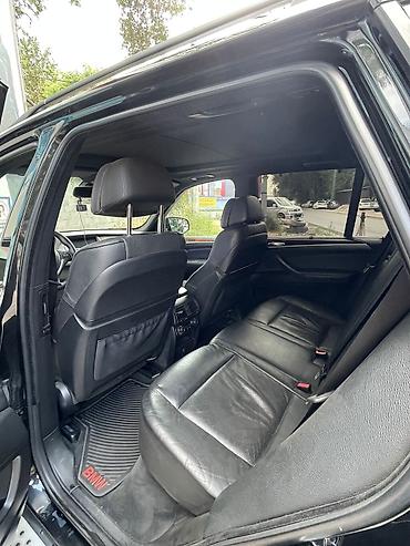 Представляем черный кроссовер BMW X5 с панорамной крышей и черным кожаным салоном. Автомобиль оснащен серебристыми дисками, багажником на крыше и боковыми подножками для удобства посадки. Комфортный и просторный салон, выполненный из качественных материалов, включает мультимедийную систему и декоративные вставки "под дерево". Отличный выбор для поездок по городу и за его пределами.
