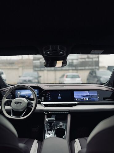 Geely Tugella, 2019 год выпуска Кузов: белый купе-кроссовер с высоким клиренсом, повторители поворотников в зеркалах, электролюк. Двигатель: 1.5 турбо, бензин. Трансмиссия/режимы: выбор режимов езд...