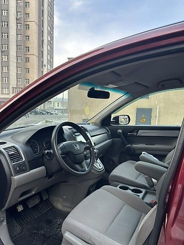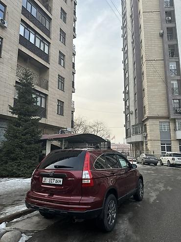 Honda CR‑V, рестайлинг 2010–2012, кузов SUV, цвет бордовый металлик. Полный привод 4WD. Оригинальные литые диски, всесезонная резина. Тонированные стекла, рейлинги на крыше. Фары с прозрачными линзами, противотуманные фары. Задние парктроники. Заднее стекло с дворником и обогревом.
