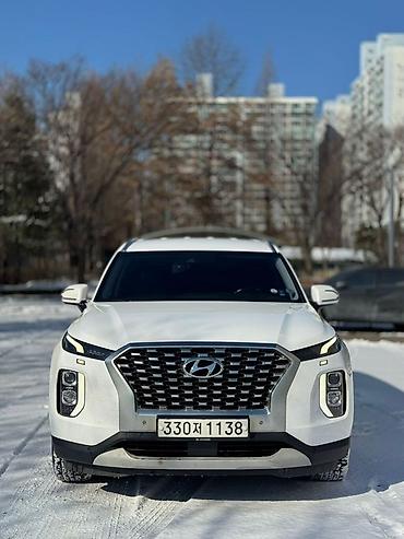 Hyundai Palisade, белый кроссовер полноразмерного класса.