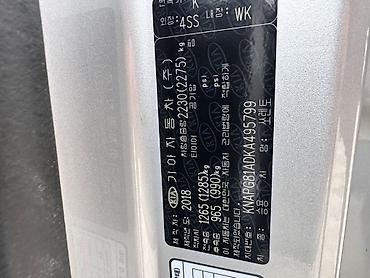 Kia Sorento, серебристый кроссовер (рестайлинг). VIN: KNAPG81ADKA495799. Заводская табличка: 2018 г., кузов WK, цвет 4SS (Silver).