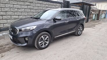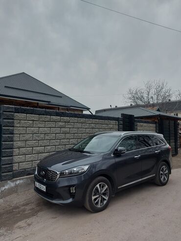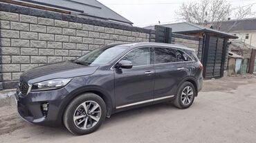 Kia Sorento, темно‑серый кроссовер (дорестайлинг/рестайлинг поколения UM). Просторный 5‑дверный кузов с серебристыми рейлингами на крыше и хромированными молдингами по бортам. Легкосплавные диски, резина всесезонная. LED ДХО и противотуманные фонари в бампере, линзованная оптика, решетка радиатора фирменного дизайна. Задние датчики парковки, камера заднего вида (место под нее в ручке двери багажника), задний спойлер. Зеркала с повторителями поворота, тонированные стекла, бесключевой доступ (кнопка на ручках дверей).