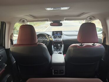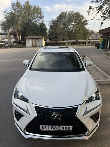 Lexus NX — премиальный кроссовер в белом цвете с ярким бордовым кожаным салоном.