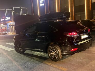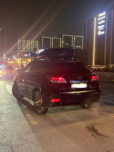Lexus RX (поколение XU30), кроссовер 5‑дверный, черный цвет. Основные особенности: - Полный привод AWD - Бензиновый двигатель V6, автоматическая коробка передач - Литые диски, широкие шины - Рейли...