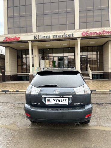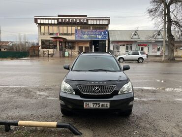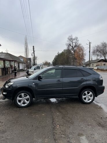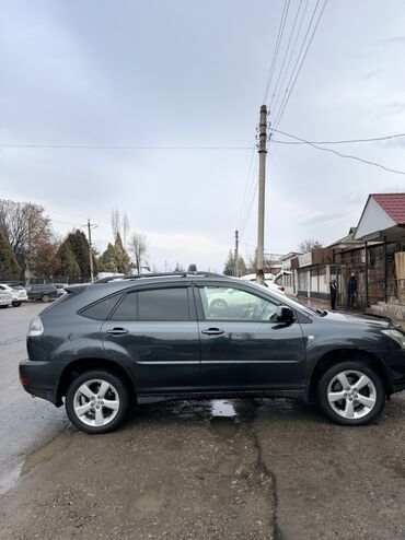 Надежный и комфортный кроссовер премиум‑класса для города и загорода. Номер модели и эмблемы на кузове: RX 330, LEXUS. Регистрационные знаки: KG. Цвет кузова — темно‑серый/графит.