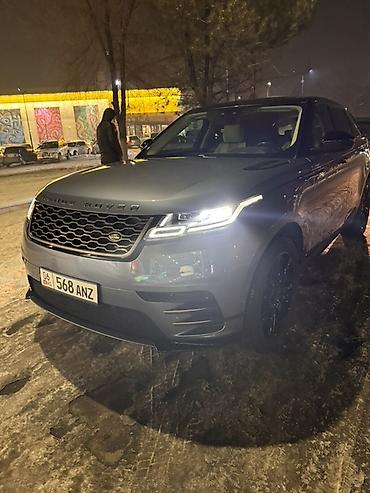 Range Rover Velar — стильный премиальный кроссовер в сером металлике с контрастной чёрной крышей и чёрными легкосплавными дисками. Светодиодная оптика, фирменная решётка радиатора, аккуратные аэродинамические элементы бампера.