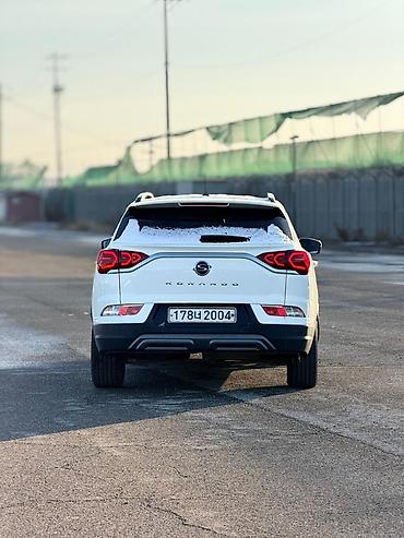 Модель на корейских номерах, надпись Korando на корме, эмблемы SsangYong. Белый цвет выгодно подчёркивает линии кузова и делает автомобиль заметным на дороге.