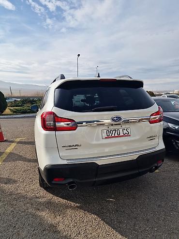Практичный семейный SUV с высоким клиренсом и вместительным багажником, подходит для города и путешествий. Номера: 0970 CS. Модель: Subaru Ascent AWD. Цвет: белый перламутр.