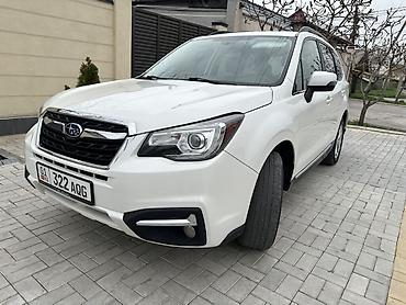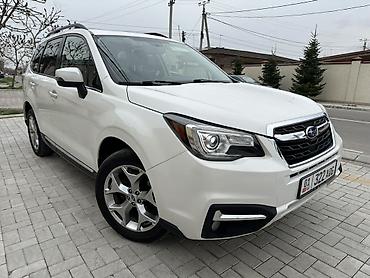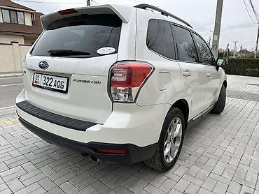 Надежный семейный кроссовер для города и загородных поездок, с хорошей геометрической проходимостью и комфортным салоном. Номера KG на авто. Модель: Subaru Forester. Цвет: белый. Полный привод.