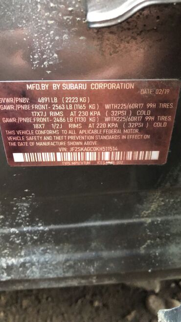 - Механика: атмосферный оппозитный двигатель Subaru и вариатор Lineartronic (характерно для модели), постоянный полный привод AWD с системой X‑Mode и ассистентом спуска.