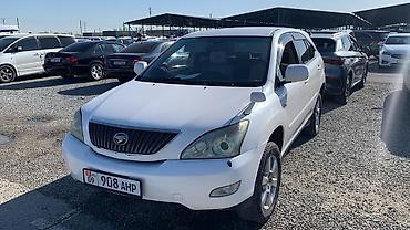 Toyota Harrier (RX) белого цвета, правый руль. Кузов кроссовер, 5 дверей, 5 мест. Номерные знаки Кыргызстана на фото. Основные особенности: - Бензиновый двигатель V6 3.0 (надпись 300G на крышке ба...