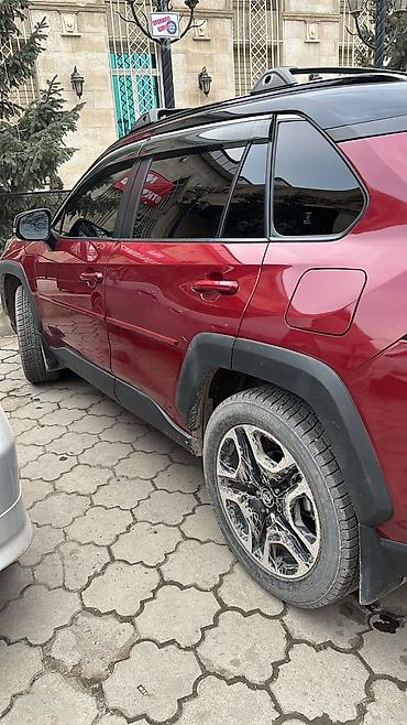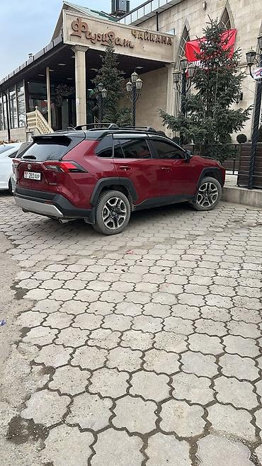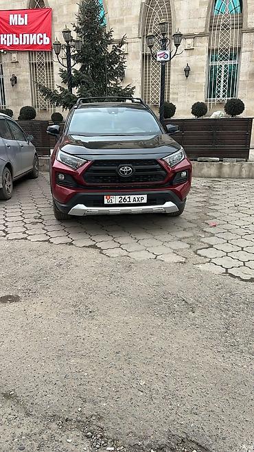 Свежепригнанная декабрь 2025 год,.Toyota RAV4 комплектация адвентура, пятиместный кроссовер в двухцветном исполнении кузова: бордовый с чёрными акцентами (капот, крыша, зеркала). Современный дизайн с чёрной решёткой радиатора и светодиодной оптикой.