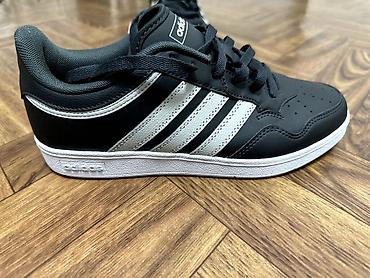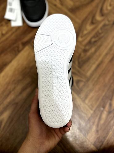 - Цвет: черный верх с серебристыми тремя полосками, белая подошва.