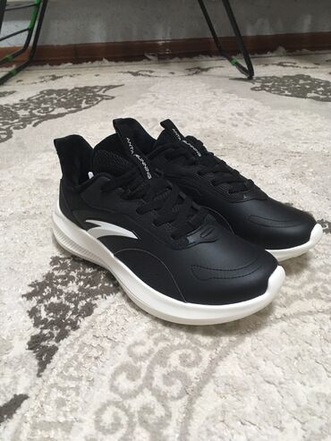 Кроссовки ANTA Running, черные с белой подошвой и серебристым логотипом по бокам.