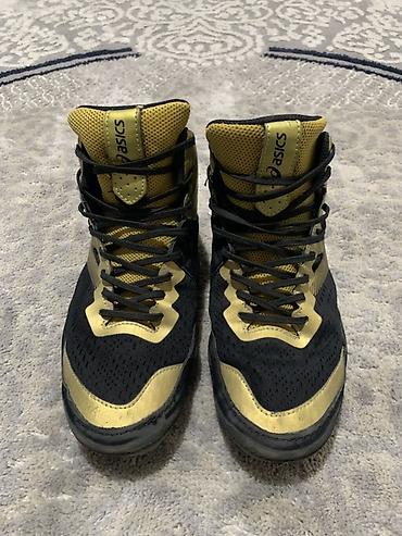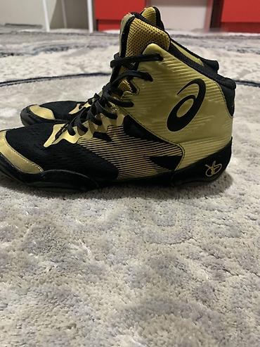 Цвет: черно-золотой, фирменные логотипы Asics по бокам и на язычке. Подходят для тренировок и соревнований по вольной/греко-римской борьбе, грэпплингу и зальной работы. Размер указывается по Asics; уточняйте посадку по длине стельки и привычному размеру кроссовок Asics.