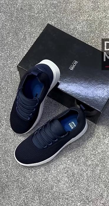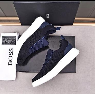 Кроссовки BOSS, темно-синие с белой подошвой.