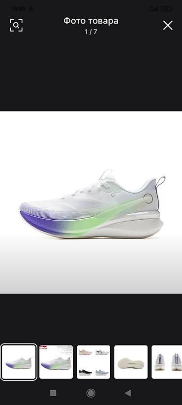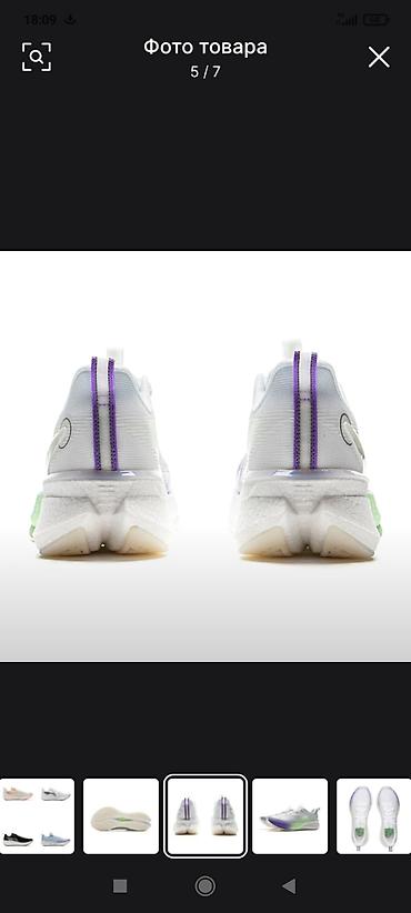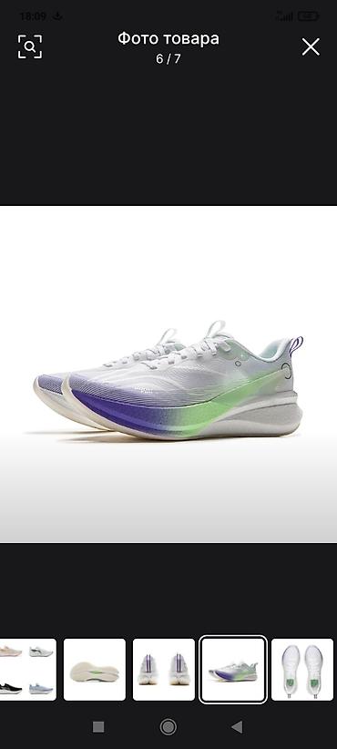 - Дизайн: белая основа с градиентом от лаймового к фиолетовому по боковой части и носку; фиолетовые акцентные дорожки на пятке; прозрачные декоративные элементы логотипа.