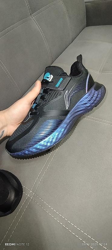 - Амортизирующая средняя подошва с заметным градиентом синего цвета по бокам — мягкий отклик и комфорт при ходьбе и беге.