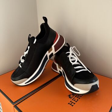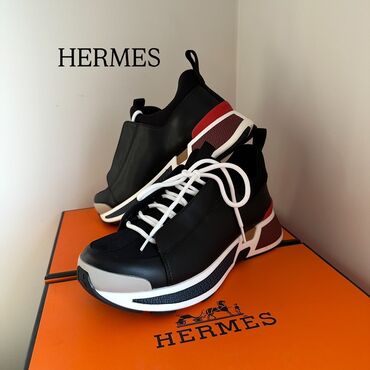 - Детали: петли для удобного надевания на язычке и пятке, контрастные белые шнурки, аккуратная строчка, фирменная эстетика Hermes