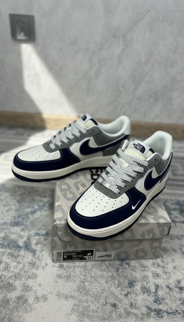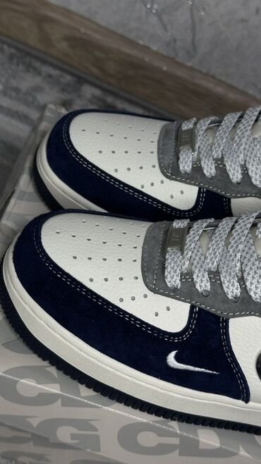 - Контрастные элементы: крупный темно‑синий Swoosh по бокам и мини‑логотип Swoosh у носка
