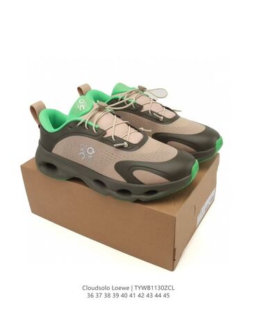 - Дизайн: смешение бежевого, хаки и ярко‑зелёного; контрастная внутренняя отделка, логотипы Loewe на язычке и боковой части.